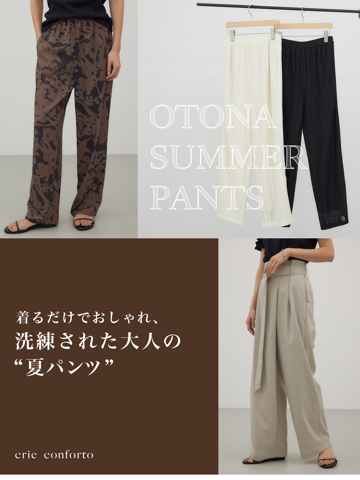 【crie conforto(クリーコンフォルト)】OTONA SUMMER PANTS 着るだけでおしゃれ、洗練された大人の“夏パンツ”
