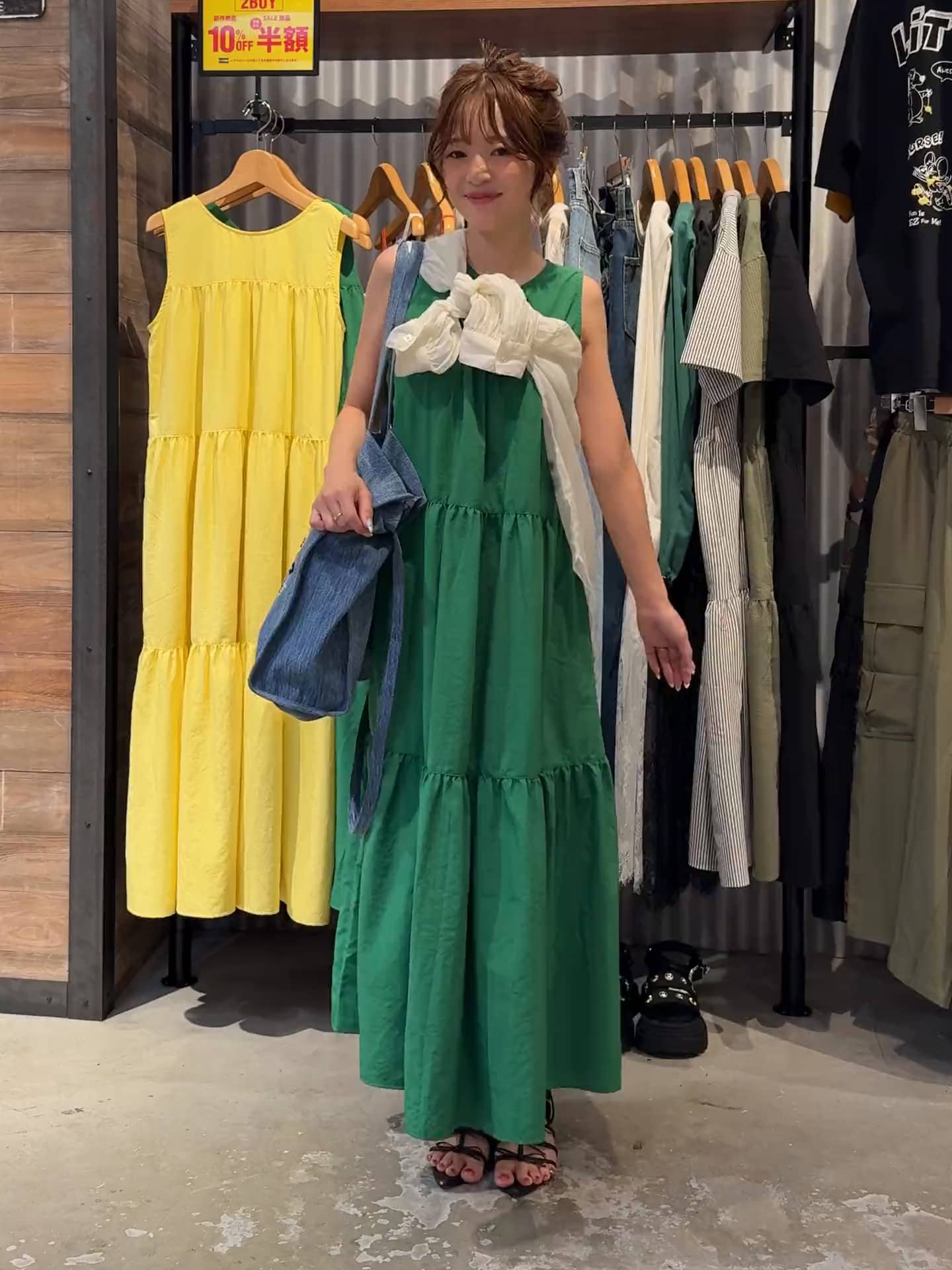 ワンピースは前後2wayでUネックとVネックの使い分けができます✨さらっとした素材で夏にぴったり☀️