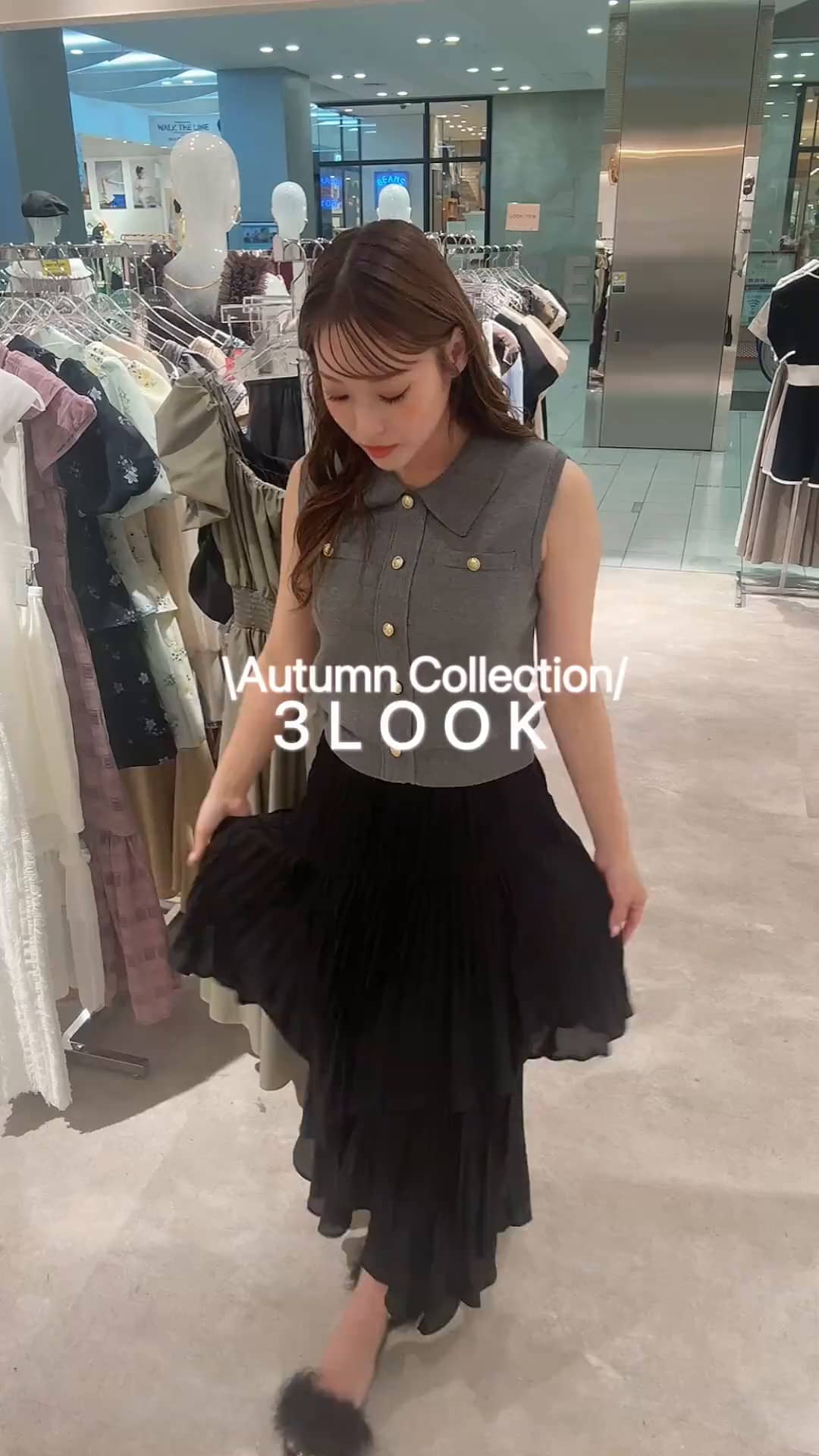 「プリーツティアードマキシスカート」は、繊細なプリーツ加工で動きのあるスタイルを実現。