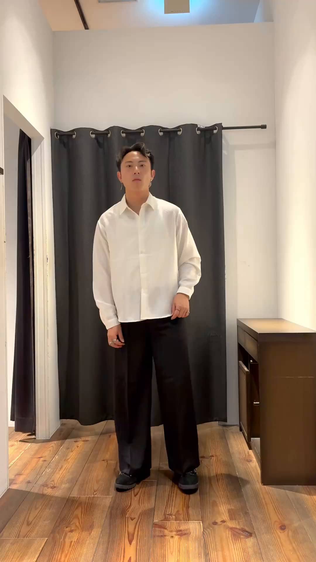 着用アイテムは上下共にLサイズです!The!キレイめ!!!というコーディネート!シャツはジャガード柄がうっすら施されており、シンプルなシャツコーデの差別化を図れます!また、寒い時期はカーディガンや上に色物のトレーナーなどを合わせても可愛いです!そしてワイドパンツ、言わずもがなですが、ワイドの綺麗なシルエットにストライプ柄という何に合わせてもさまになるパンツです!