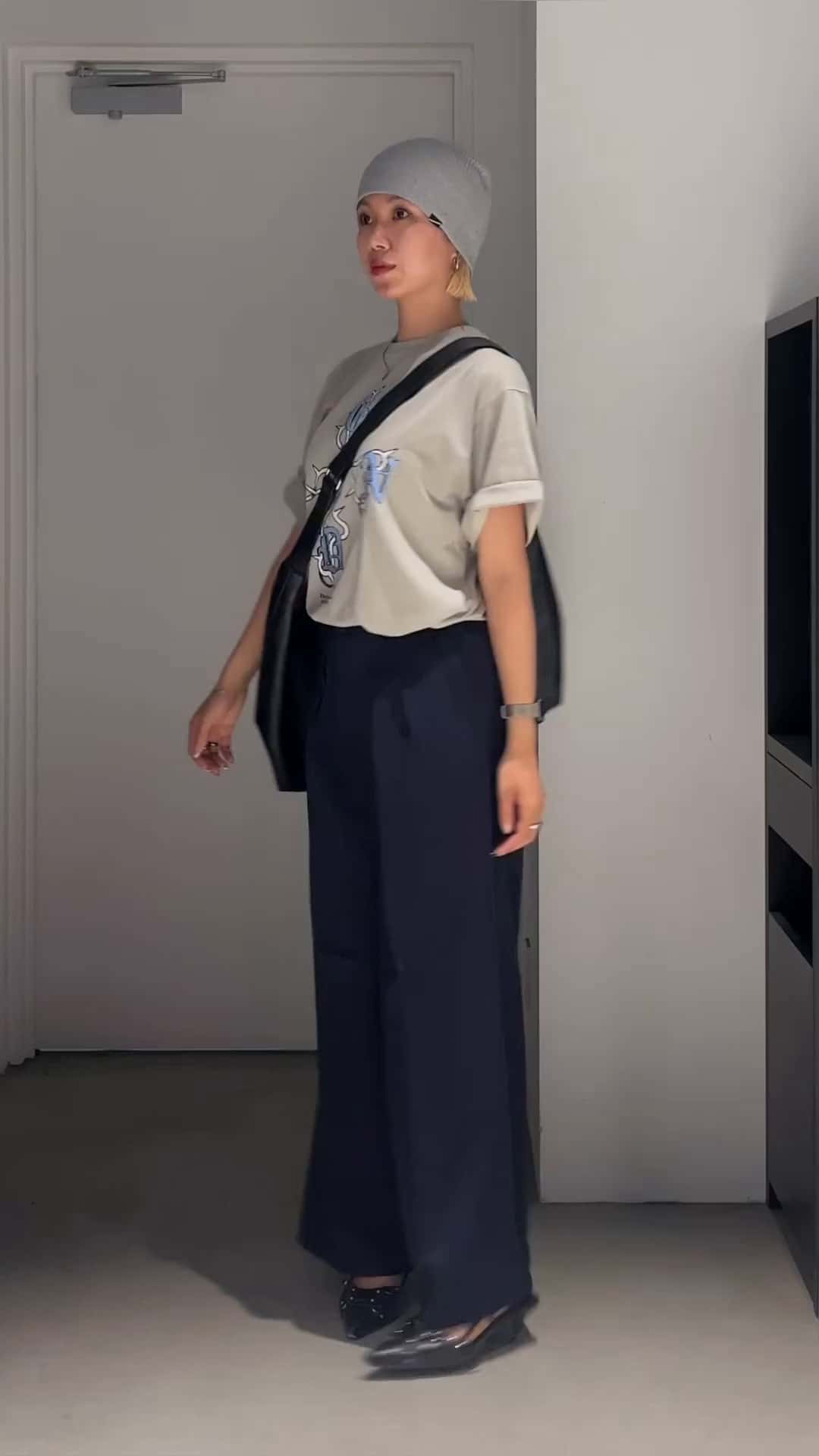身長169cm。パンツ→メンズLサイズ着用。170cm前後の方はM,Lサイズどちらでもご着用いただける丈の長さのため、太もも部分のシルエットなどでお選びいただくのがおすすめです。今回はゆるっとしたサイズ感にするために、Lサイズを着用しております。