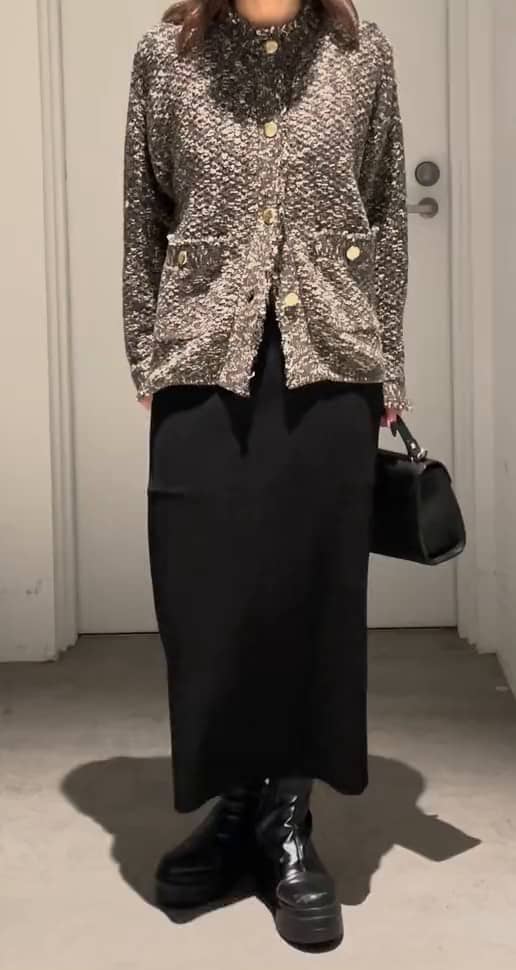 ツイードライクニットカーディガン
