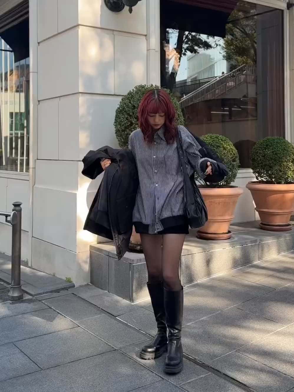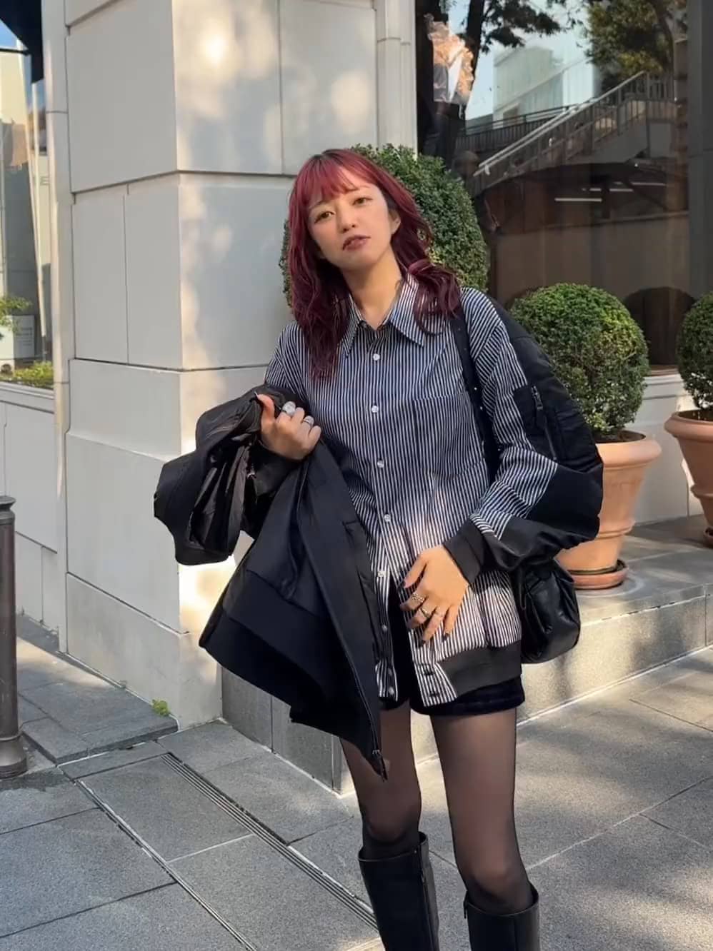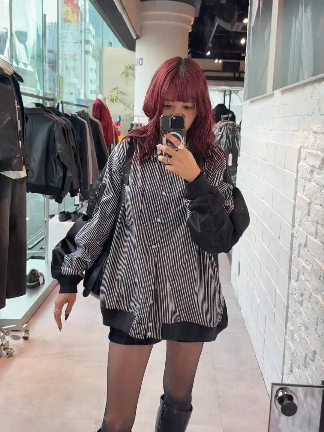 シャツとブルゾンがドッキングされた珍しいデザインのアイテム♡メンズのアイテムなのでオーバーサイズで着れて可愛い!!ショートパンツとの相性いいです✨