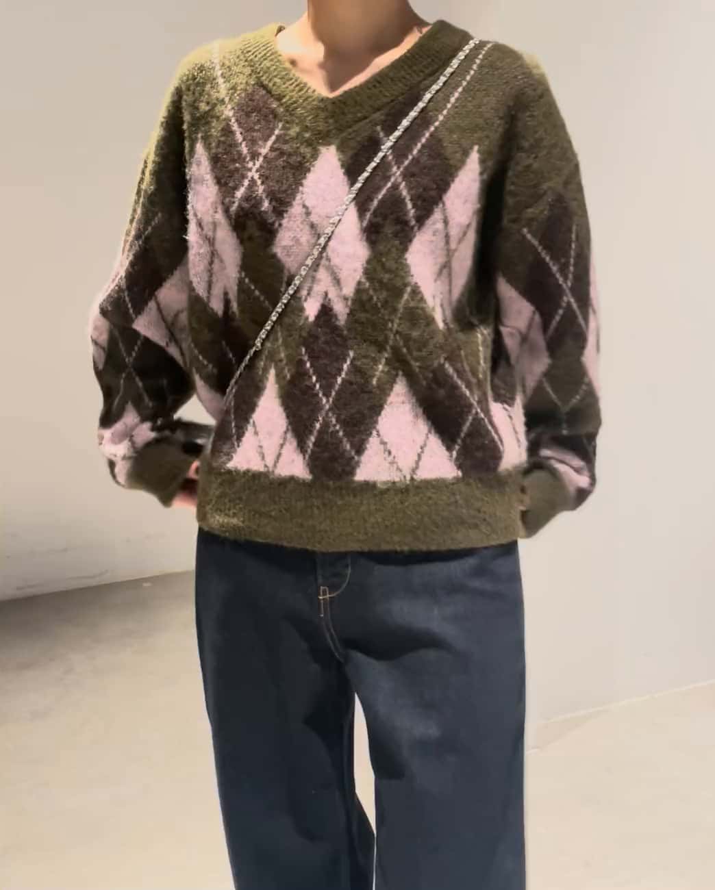【crie conforto】ヘアリーアーガイルニット