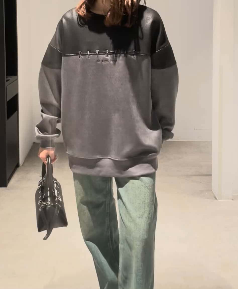 フェイクスエード切り替えトップス